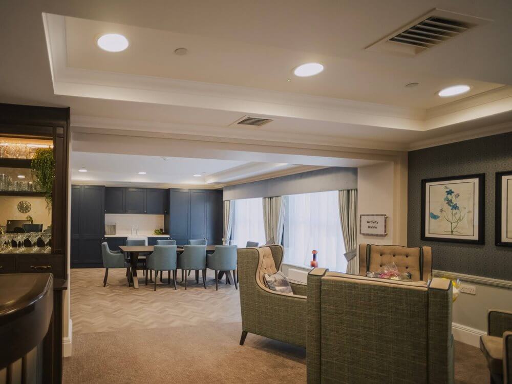 During the refurbishment there’s been a full reconfiguration of all the facilities, including our hair and beauty salon, namaste room, activities room and lounges.