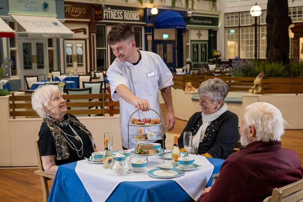 Inside our welcoming home residents can enjoy a variety of luxury amenities including a cinema room, hair salon, spa and gym. Our beautifully restored building centres around a bright and spacious atrium; a vibrant social hub which is a much-loved part of daily life. This light-filled space is a welcoming place to spend time with friends and loved ones and features a reminiscence-style Terry’s chocolate shop, Duke of York pub and shop.