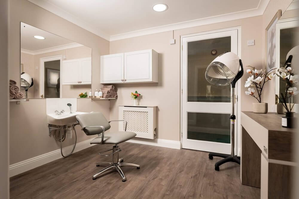 Residents can enjoy many quality facilities including cosy lounges, a welcoming café and a hair salon. Each bedroom is tastefully decorated and outside there are large, landscaped grounds and an enclosed courtyard garden.