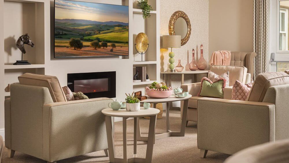 Residents can enjoy many quality facilities including cosy communal areas, café and hair salon. Each bedroom is spacious and beautifully furnished, each with an en-suite bathroom. Outside there are large, landscaped grounds and an enclosed courtyard garden.